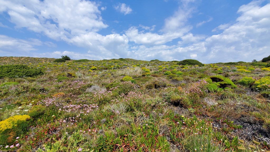 Not having a lifetime or the fortitude to walk 700km, I opted for a manageable 100km section of the 226km Fisherman’s Trail, used by local denizens to access fishing spots or their own secret beaches. I give the others in my group a good start and within minutes I am alone as they disappear around a corner. The trail is well-marked and fairly easy to follow; its narrow footpath snakes along cliffs, cuts down to the shore and across beaches of golden sand, up to the cliffs again and through plateaus of wildflowers, down to the shore, up again to cross a moonscape of dunes, detouring through farmlands, and cutting into woodlands. All of it along an endless coastline of magnificent desolation and unparalleled splendour.