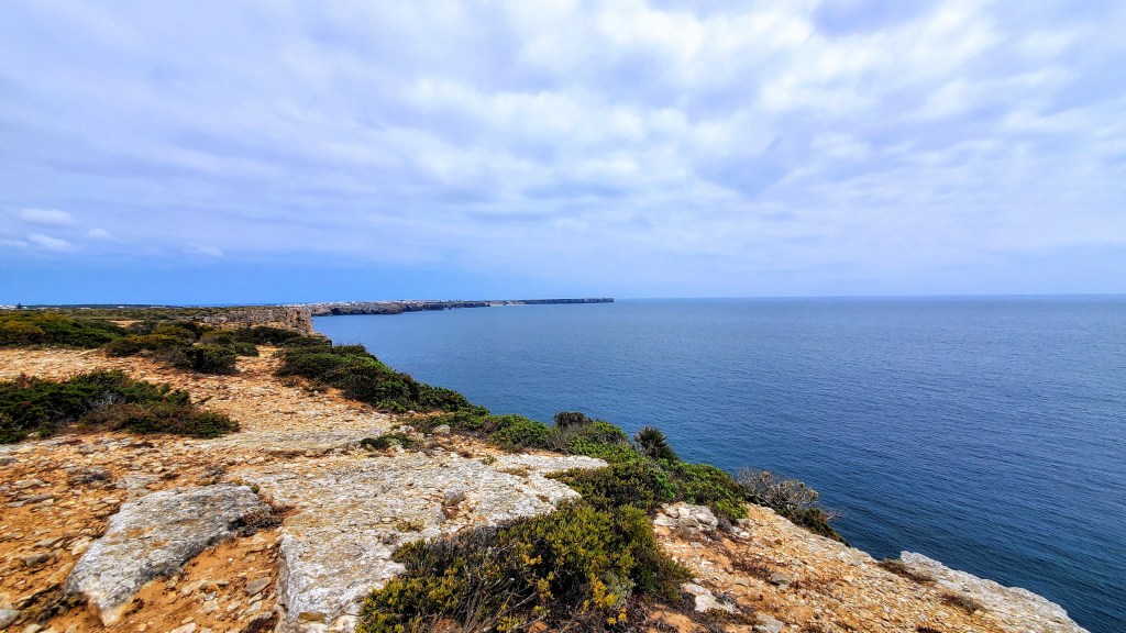 And, you know what, the end of the world isn’t such a bad place – there is a lighthouse, a decent café, a small museum, and several souvenir stalls along a paved two-lane road leading up to its entrance where tour buses disgorge throngs of tourists eager for selfies at the ‘I was at the End of the World’ mural. This is Cabo de São Vicente (Cape St. Vincent), named for a martyred and now little regarded priest from the 4th century, and it provides for a somewhat jarring end to my trek – after a week of isolation and few travellers to suddenly crowds of tour groups. I feel a quiet resentment. Who are these interlopers, these package-tourists, arriving in such comfort and free of sweat and dust just like the Italian in the linen jacket. I am dusty, my moisture-wicking shirt soaking in sweat, and firmly of the view that a selfie at the mural must be earned by a long pilgrimage, not some day trip. I find the cacophony of the masses a bit much for my sensibilities and seek a quieter spot, away from the little square and find a bit of solace at the far end of the base of the lighthouse – where I stand uninterrupted to gaze at the distant horizon at what the ancient world believed to be the end. Actually, the end of the world isn’t even the end of the world – that fame, being the most westerly point on continental Europe, belongs to Cabo da Roca, near Sintra, the fairy-tale city of painted castles a few hundred km north of here. But why quibble over romantic notions from centuries ago of where it was believed that the earth fell off the horizon into the deep unknown of the then unnamed and unexplored ocean, where the sun disappeared, and where sea monsters dwelled.
